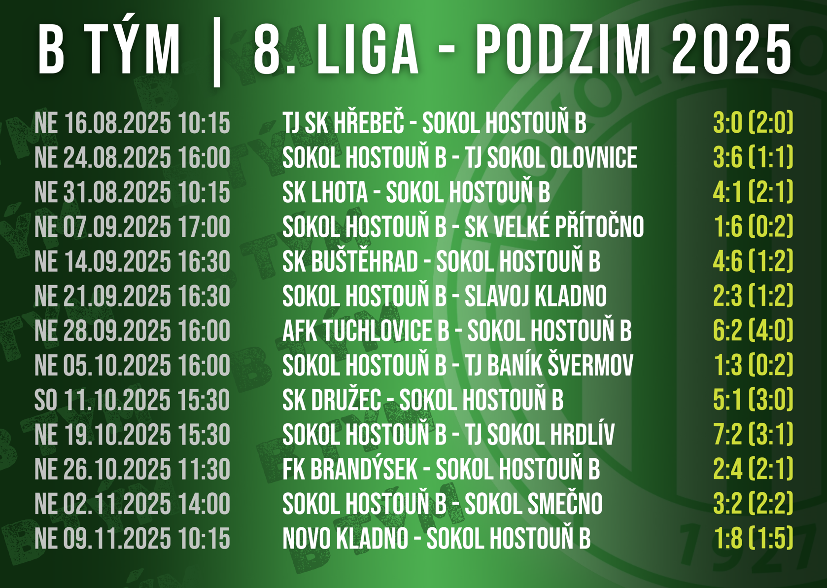 Podzimní část sezony zakončila rezerva Sokola Hostouň s bilancí pěti výher a osmi porážek. Z toho hned čtyři vítězství přišla až v posledních čtyřech kolech, kdy se tým výrazně zvedl. Více než samotný bodový zisk však zaujme celková branková bilance. Skóre 39:47 svědčí o tom, že duely rezervy nenudily.