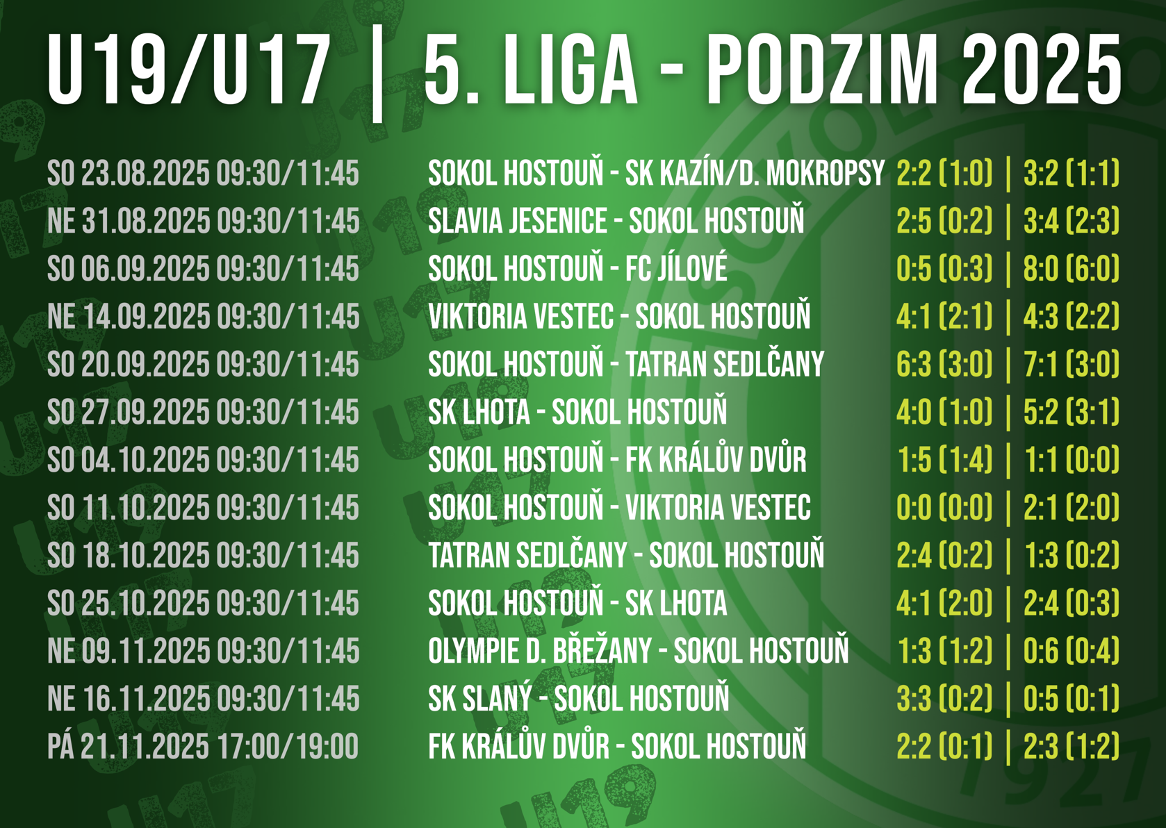 Oba dorosty Sokola Hostouň předvedly během podzimní části odhodlaný a pracovitý přístup. Starší dorost získal znovu herní sebevědomí a v závěru sezony ukázal, že se může měřit s každým soupeřem. U17 naopak patří mezi nejvýraznější ofenzivní týmy soutěže a v jarních bojích bude chtít mířit na absolutní vrchol.
