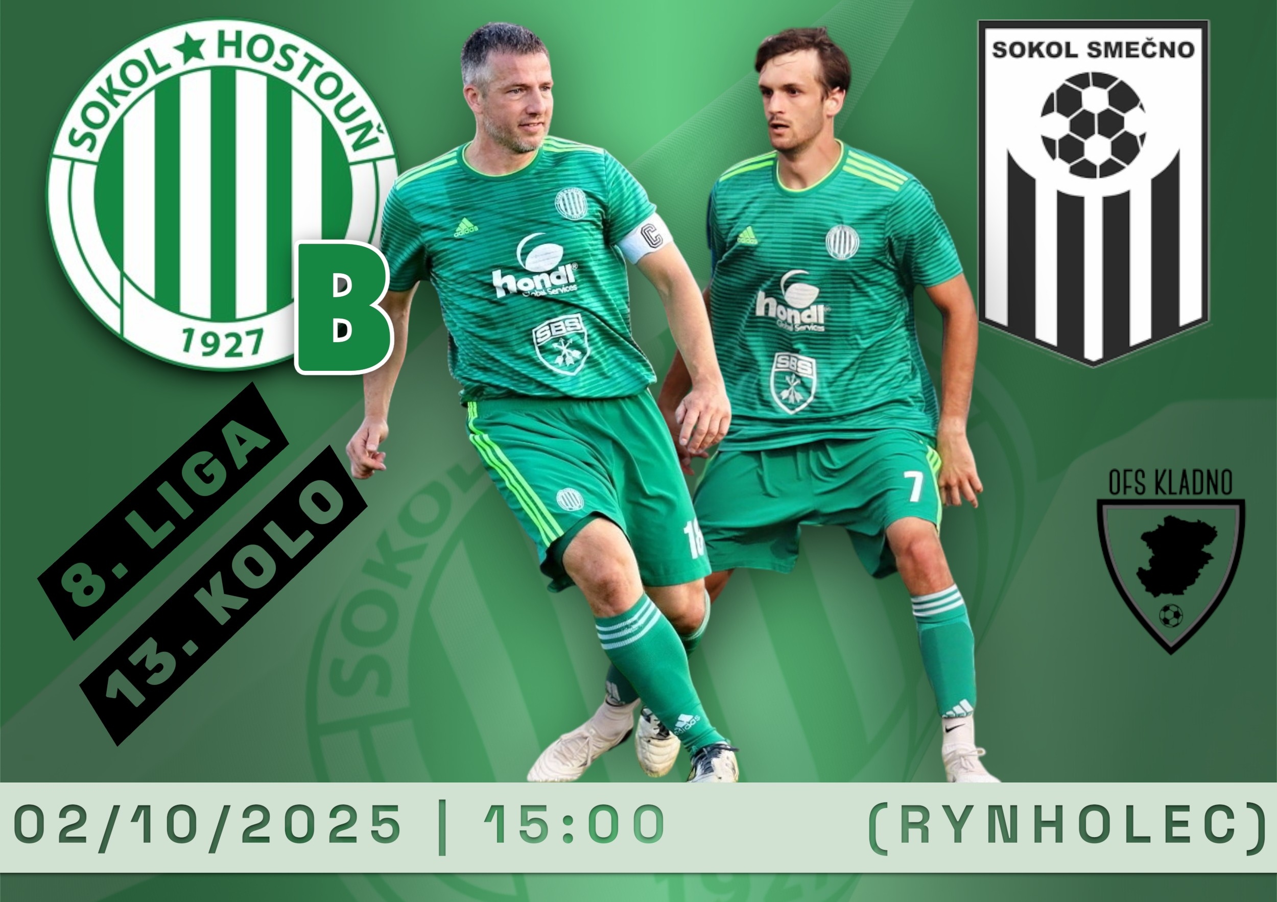 Z důvodu špatného stavu hřiště v Hostouni odehraje rezerva Sokola své poslední podzimní domácí utkání na náhradním hřišti v Rynholci, kde v rámci 13. kola 8. ligy přivítá TJ Sokol Smečno. Čas výkopu střetnutí se z důvodu kolize s jinou akcí posouvá na 15:00 hodin.