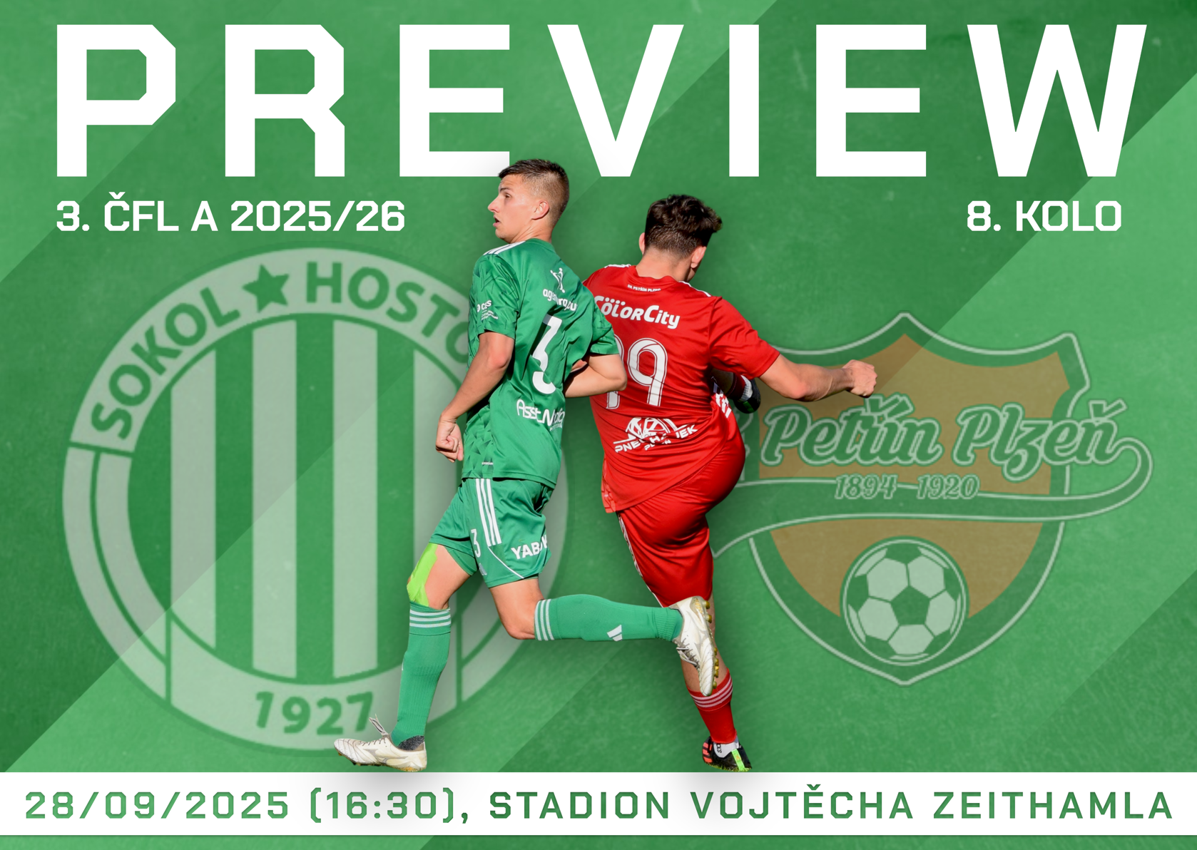V neděli odpoledne je na stadionu Vojtěcha Zeithamla v Hostouni na programu další důležitá bitva v 3. české fotbalové lize. V rámci 8. kola přivítáme plzeňský SK Petřín. Našemu týmu aktuálně náleží 9. příčka s pětibodovým náskokem na nedělného soupeře, který aktuálně uzavírá třetiligový peloton. Zápas má naplánován výkop v 16:30 hodin.