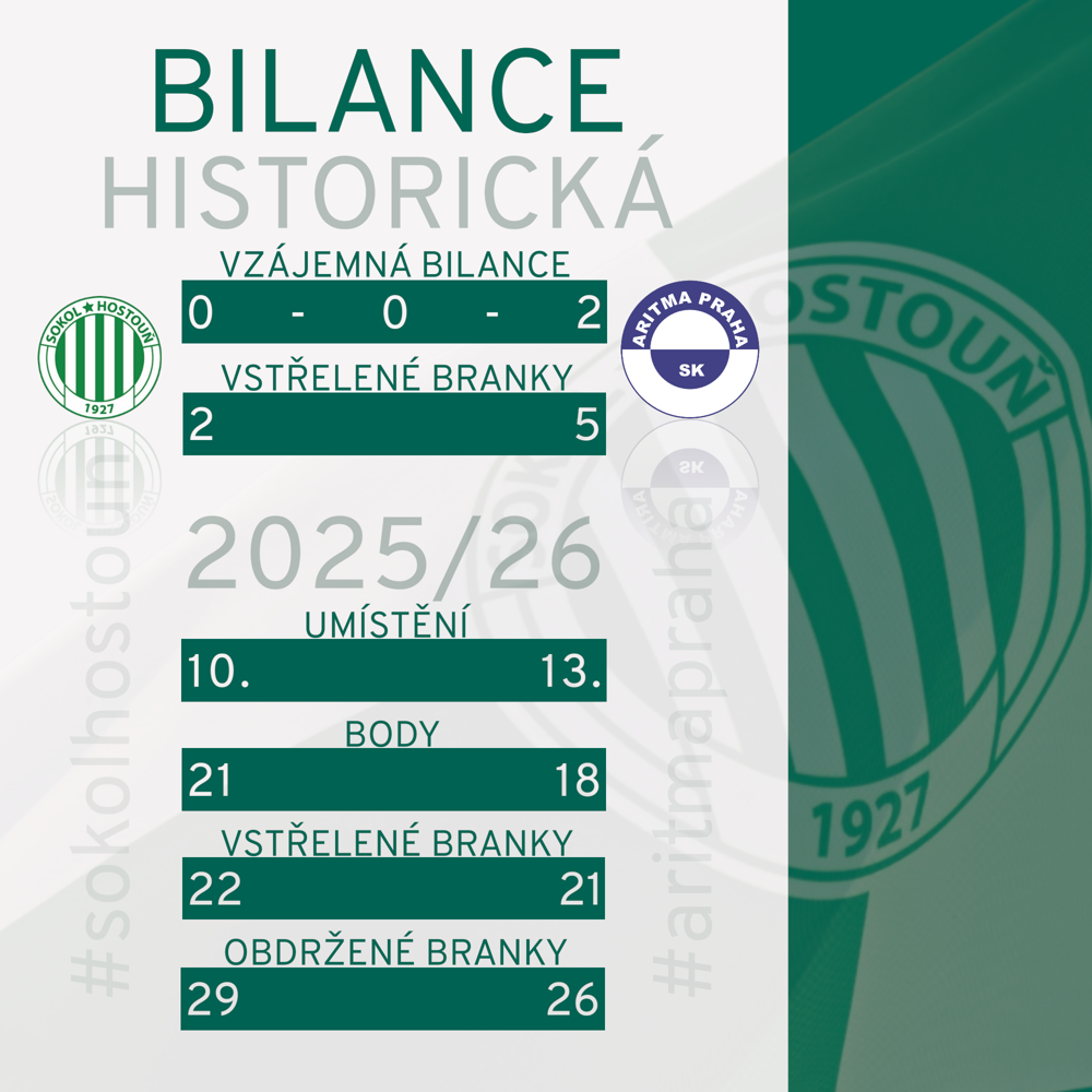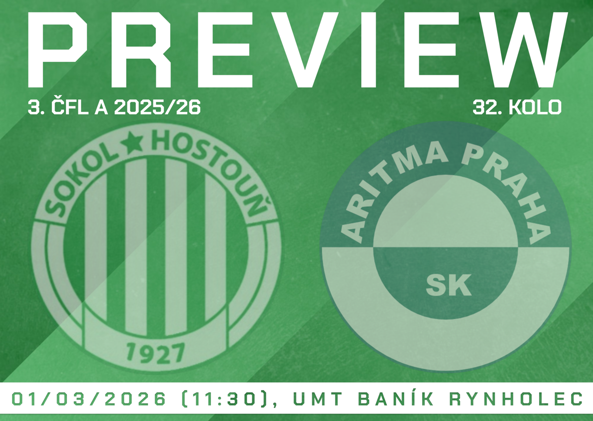 V tabulce je na tom Aritma o něco hůře než Hostouň – po 16 kolech jí patří 13. místo s 18 body. Rozdíl tří bodů ale jen potvrzuje vyrovnanost středu tabulky. Navíc je tu i motivace v podobě posledního vzájemného měření sil. V listopadu Hostouň podlehla na hřišti SK Aritma Praha 0:2, přestože byl zápas dlouho vyrovnaný a bez branek. Domácí tehdy rozhodli až ve druhém poločase a Sokolu uštědřili porážku, kterou budou chtít Hostouňští v jarní odvetě odčinit.