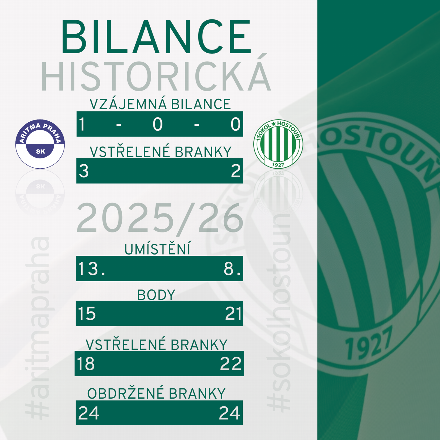 V sobotu se představíme na hřišti tradičního klubu SK Aritma Praha, který už více než sto let patří k pevným pilířům pražského fotbalu. Tým z Vokovic je známý kombinačním stylem a silovou hrou na domácí půdě. V roli letošního nováčka ve třetí nejvyšší soutěži posbírala Aritma 15 bodů a potrápila nejednoho favorita. Hostouň se pokusí navázat na poslední výkony a přivézt z hlavního města cenné body. V případě bodového zisku by Sokol minimálně dorovnal druhý nejlepší podzimní bodový zisk ze sezony 2022/23 (22 bodů).