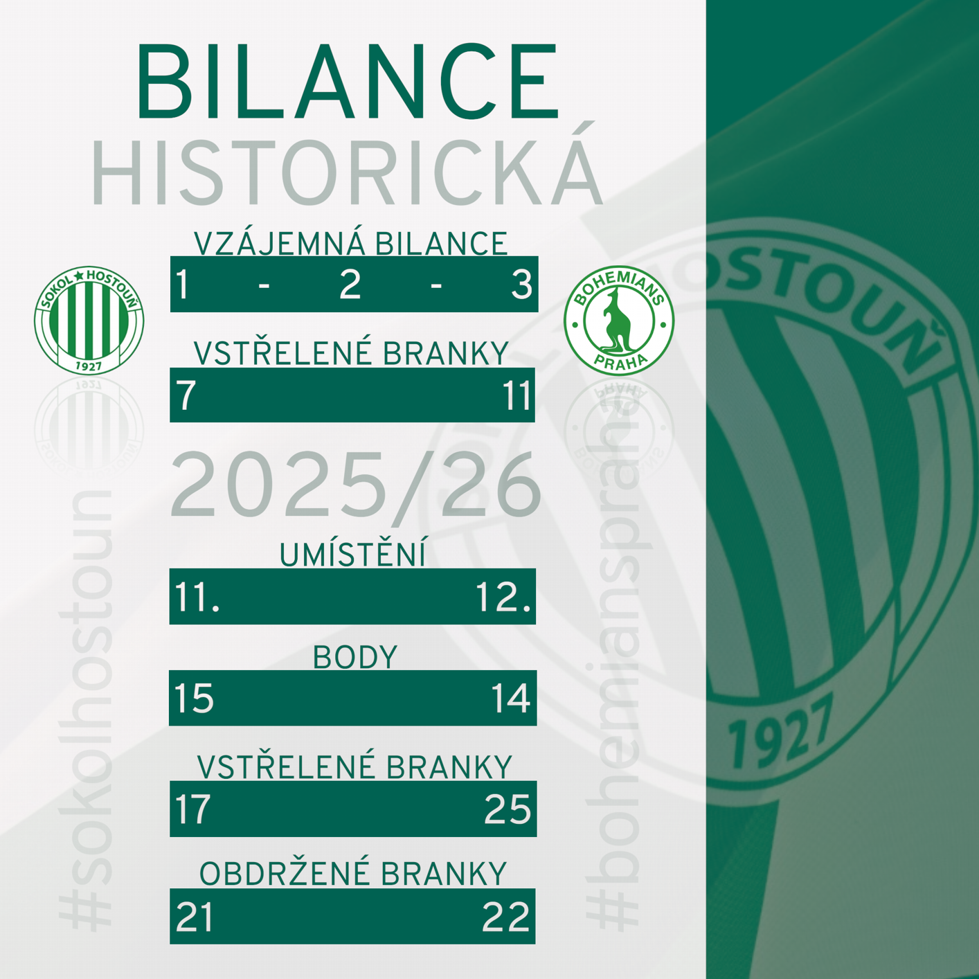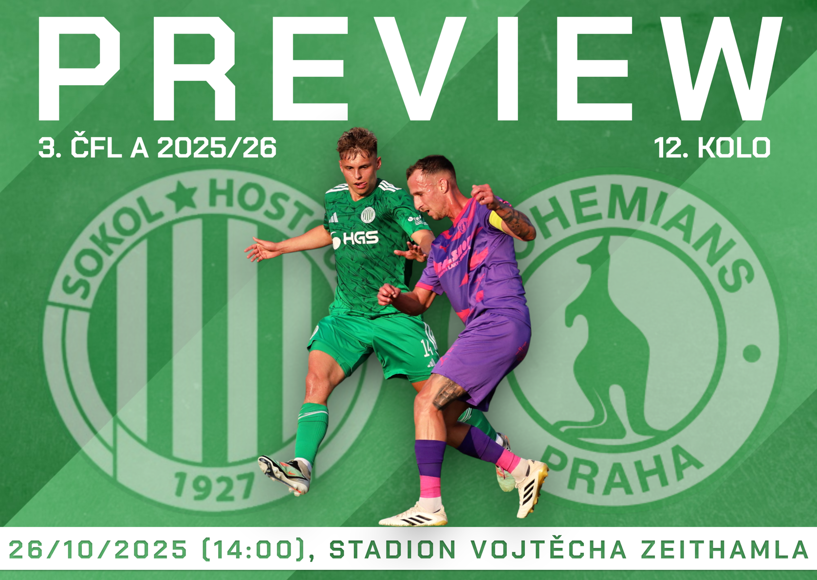 Ve 12. kole 3. české fotbalové ligy skupiny A přivítá Hostouň další slavný český klub. Domácí Sokol čeká bitva o body s rezervou prvoligového klubu Bohemians Praha 1905. Utkání na stadionu Vojtěcha Zeithamla se uskuteční v neděli odpoledne s časem výkopu ve 14:00 hodin.