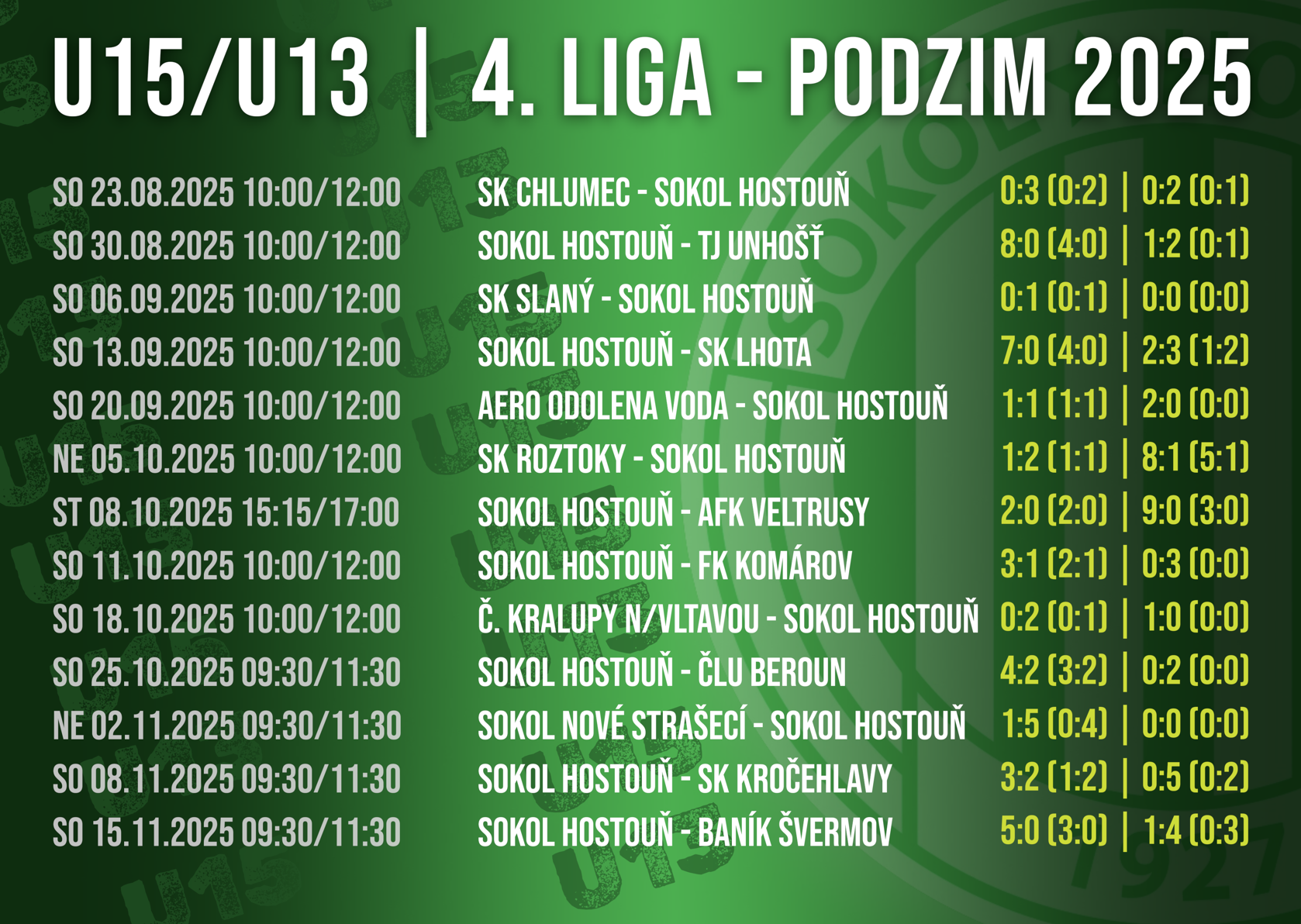 Podzimní část sezony 2025/26 mají žákovské kategorie Sokola Hostouň za sebou a mohou být na ni právem hrdé. Hlavně starší žáci U15 se prezentovali fantastickými výkony – během třinácti kol nepoznali hořkost porážky a díky tomu přezimují na první příčce své soutěže. Mladší žáci sice výsledkově tak vysoko nejsou, ale i u nich vidíme postupný výkonnostní růst a spoustu pozitivních momentů.